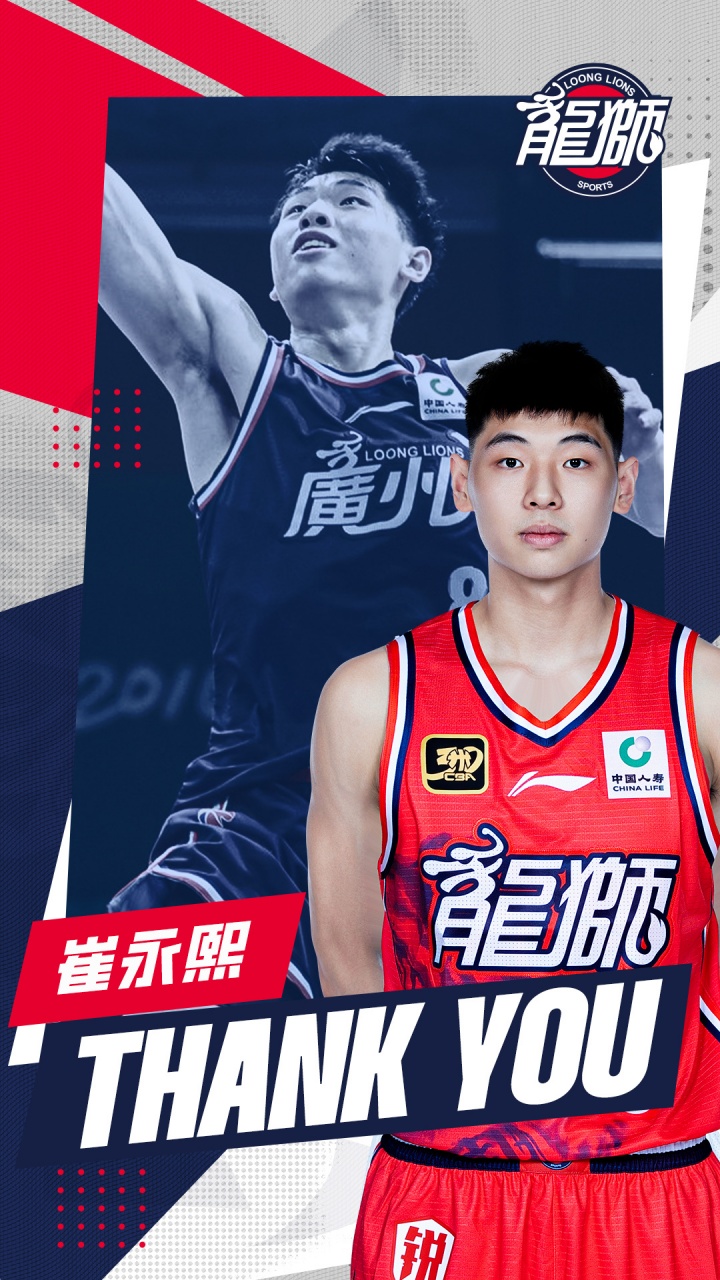 今天,我们带着不舍的心情向各位球迷宣布:俱乐部经过慎重考虑,决定支持球员的个人发展意愿,将崔永熙的独家签约权转让至广东宏远篮球俱乐部。