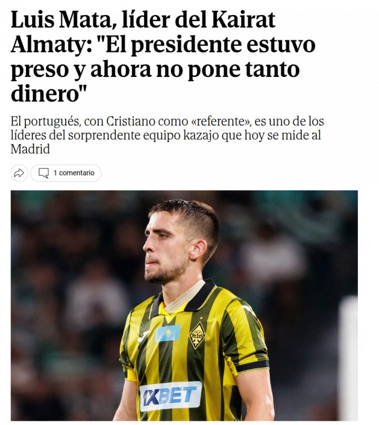 9月30日讯 欧冠第2轮,哈萨克斯坦球队阿拉木图凯拉特主场迎战皇马。赛前,凯拉特的葡萄牙后卫路易斯-马塔接受西媒《世界报》采访,谈到了球队的一些情况。