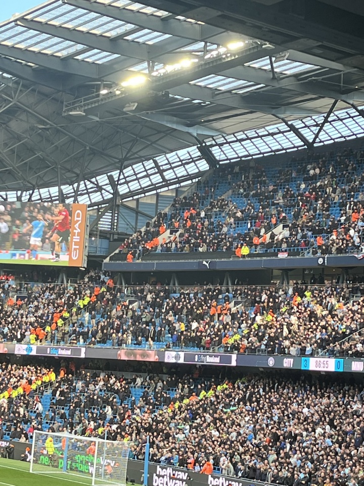 直到哈兰德在第68分钟打入第二球并终结比赛悬念之前,这场比赛并没有被归类为曼联对曼城的惨败之一。随后,曼联球迷不得不忍受曼城球迷的波兹南庆祝和几首“撕裂伦敦佬”的歌曲。